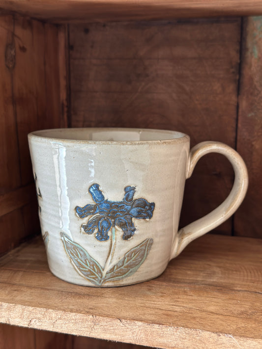Becher mit handbemalten Blumenmuster. Mikrowellen- als auch Spülmaschinengeeignet.