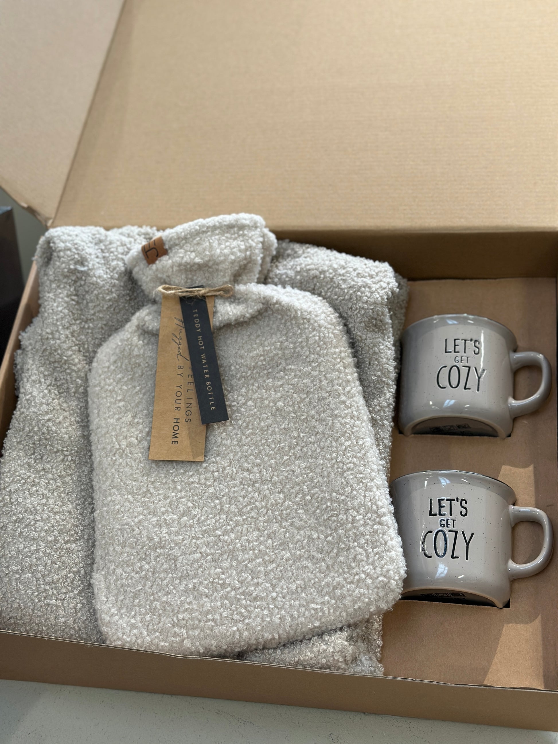 Zwei Keramik Becher 285ml., Wärmflasche, Decke 150x120cm.
