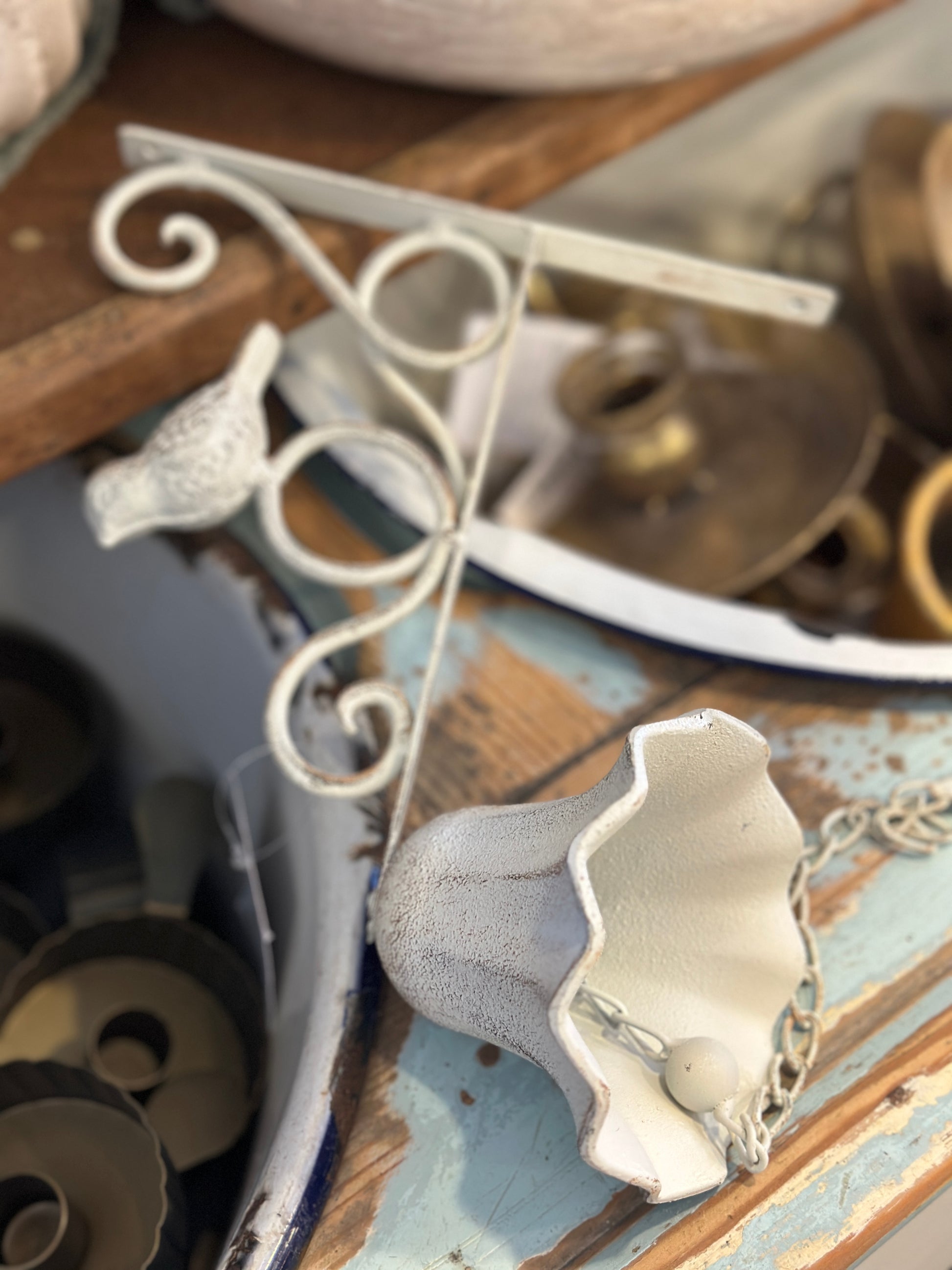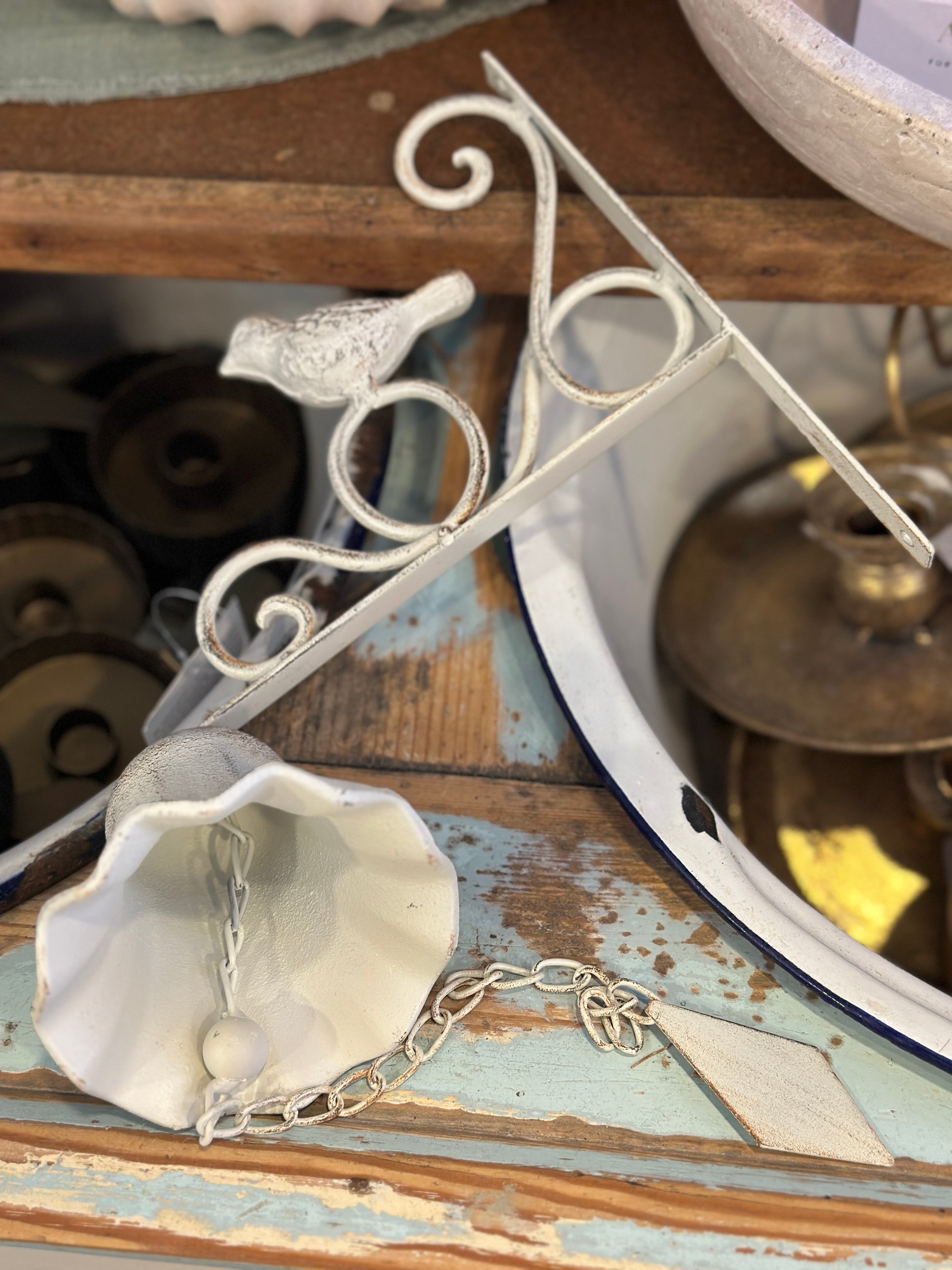 Glocke weiß, Shabby mit einem kleinen Vogel