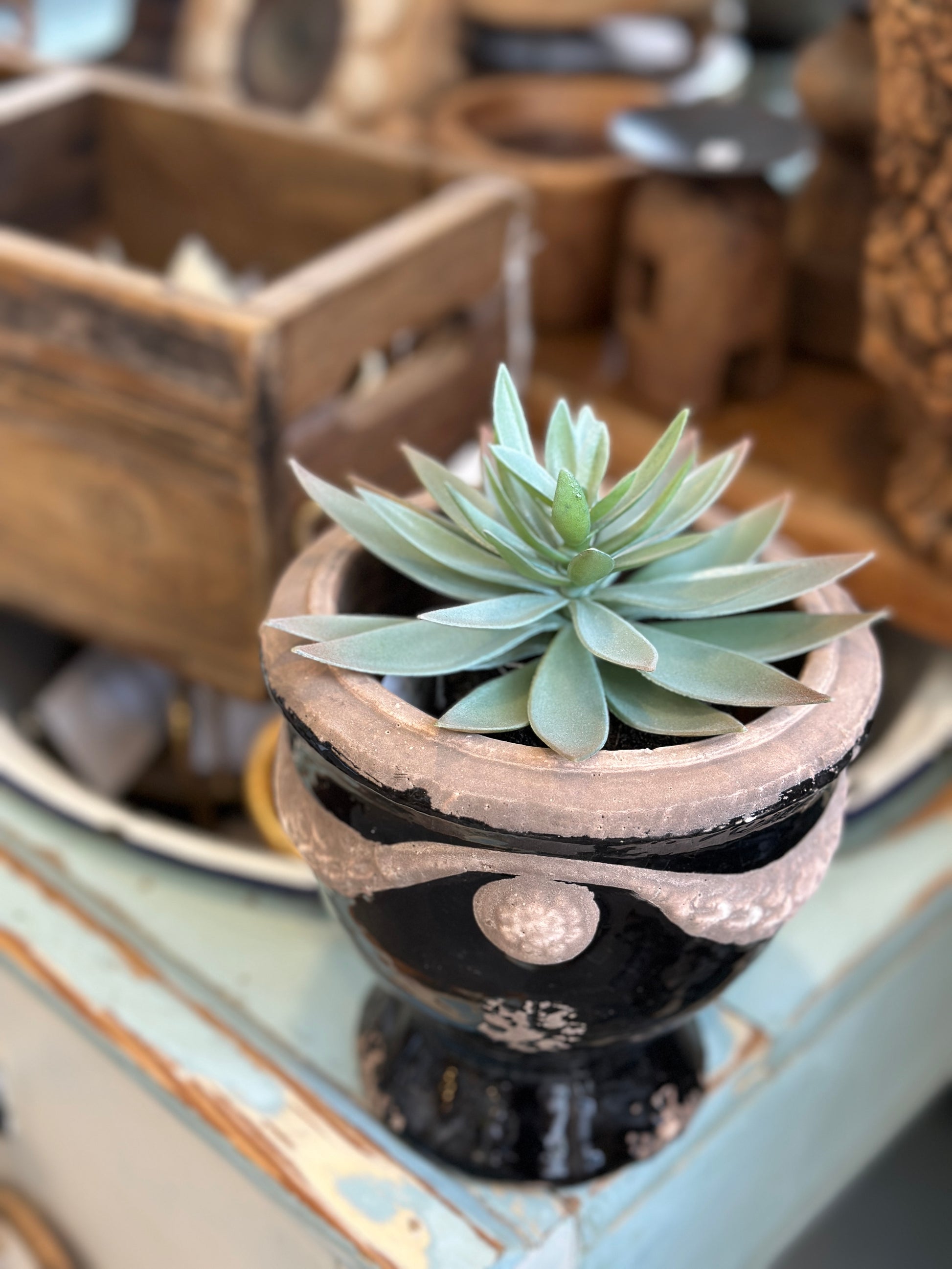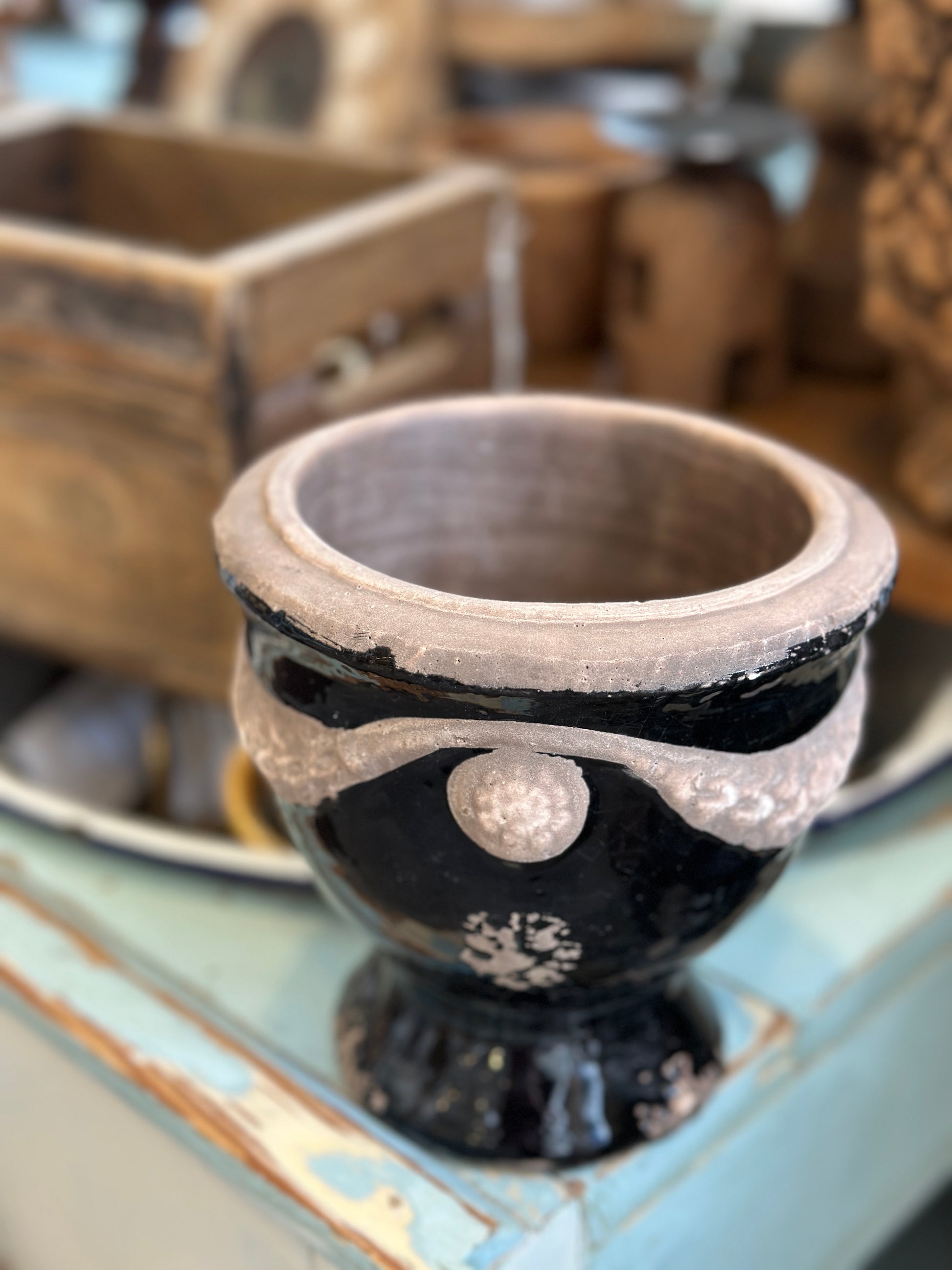 Übertopf/ Blumentopf, Terrakotta, antikschwarz glasiert